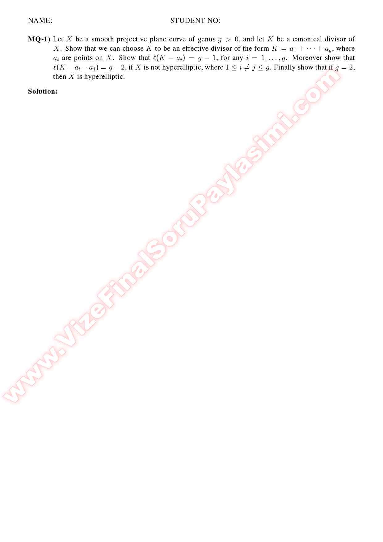 Algebraic Geometry Final Solutions -2014 11-07-2015, 14:09