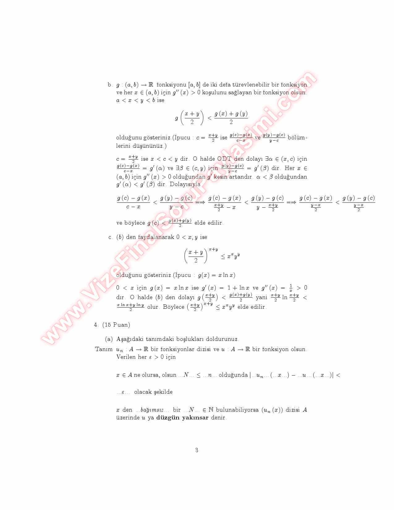 Vize ve Final Soruları / Çukurova Üniversitesi / Analiz -4