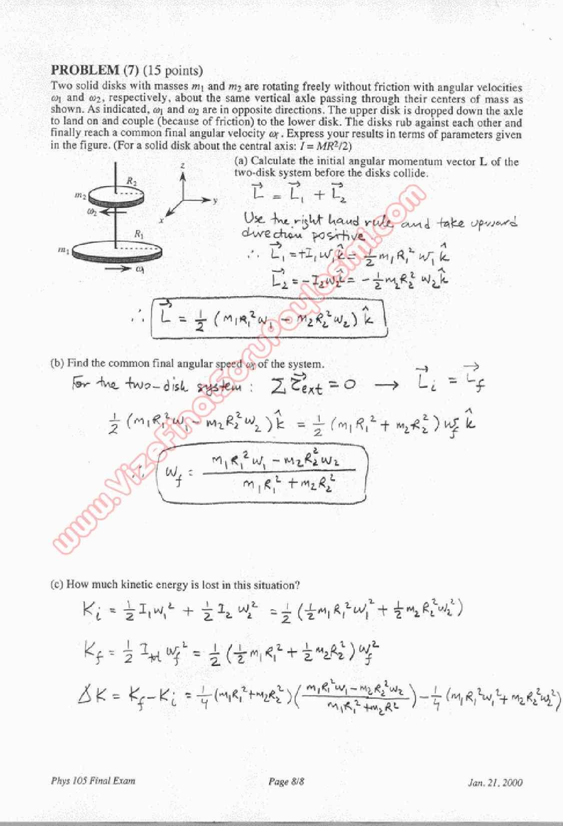 Physics-1 First Midterm Questions and Solutions Year 2000 Spring 29-10-2015, 03:15