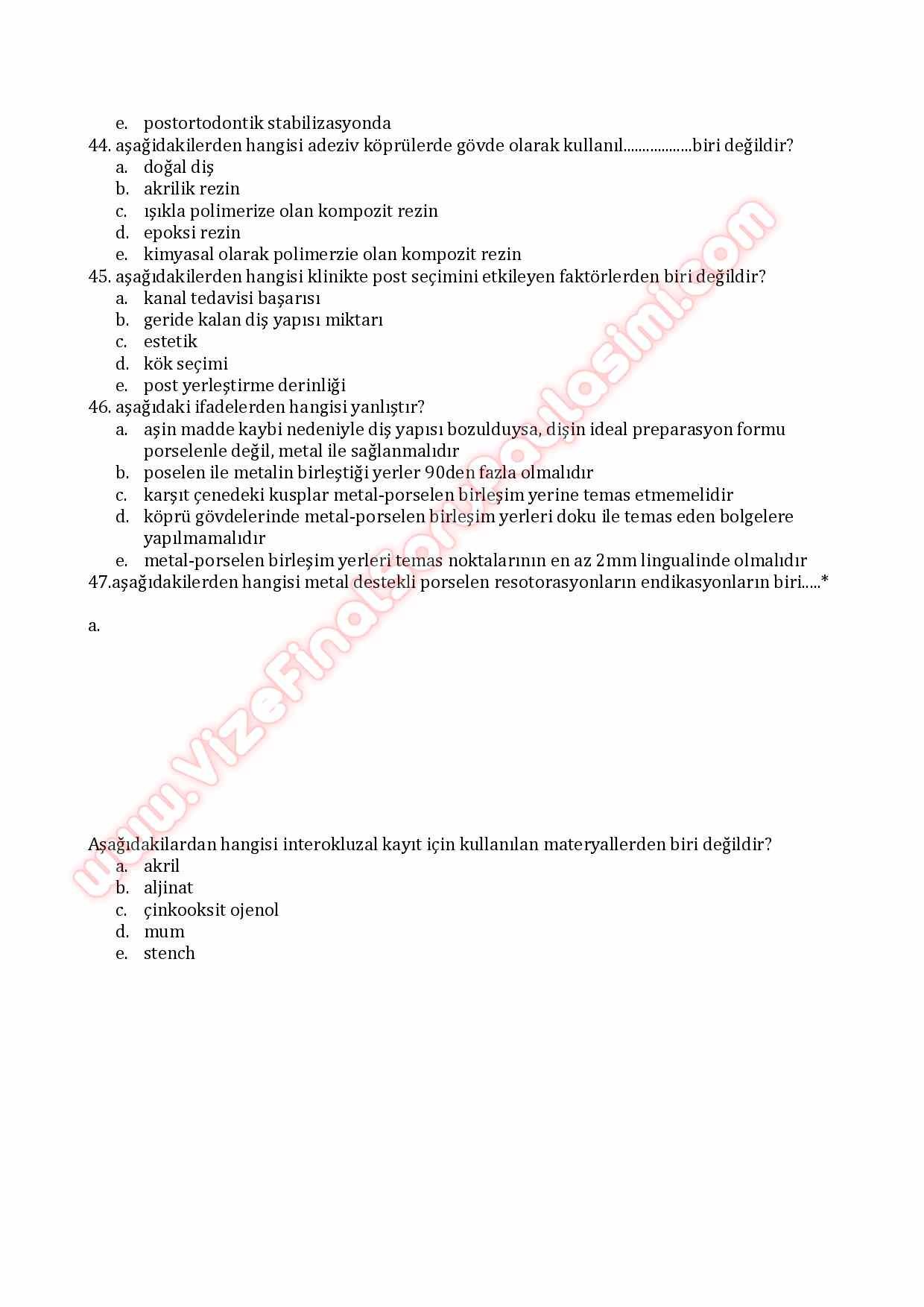 Protetik Diş Tedavisi Çalışma Soruları