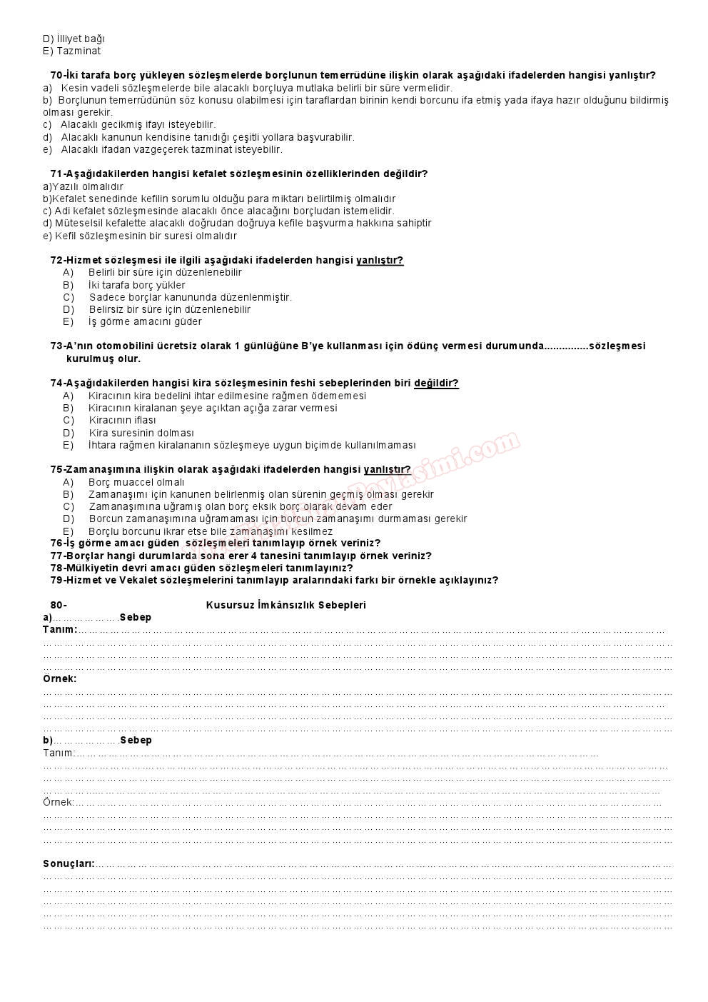 genel hukuk dersi Final Çalışma soruları Balıkesir Üniversitesi