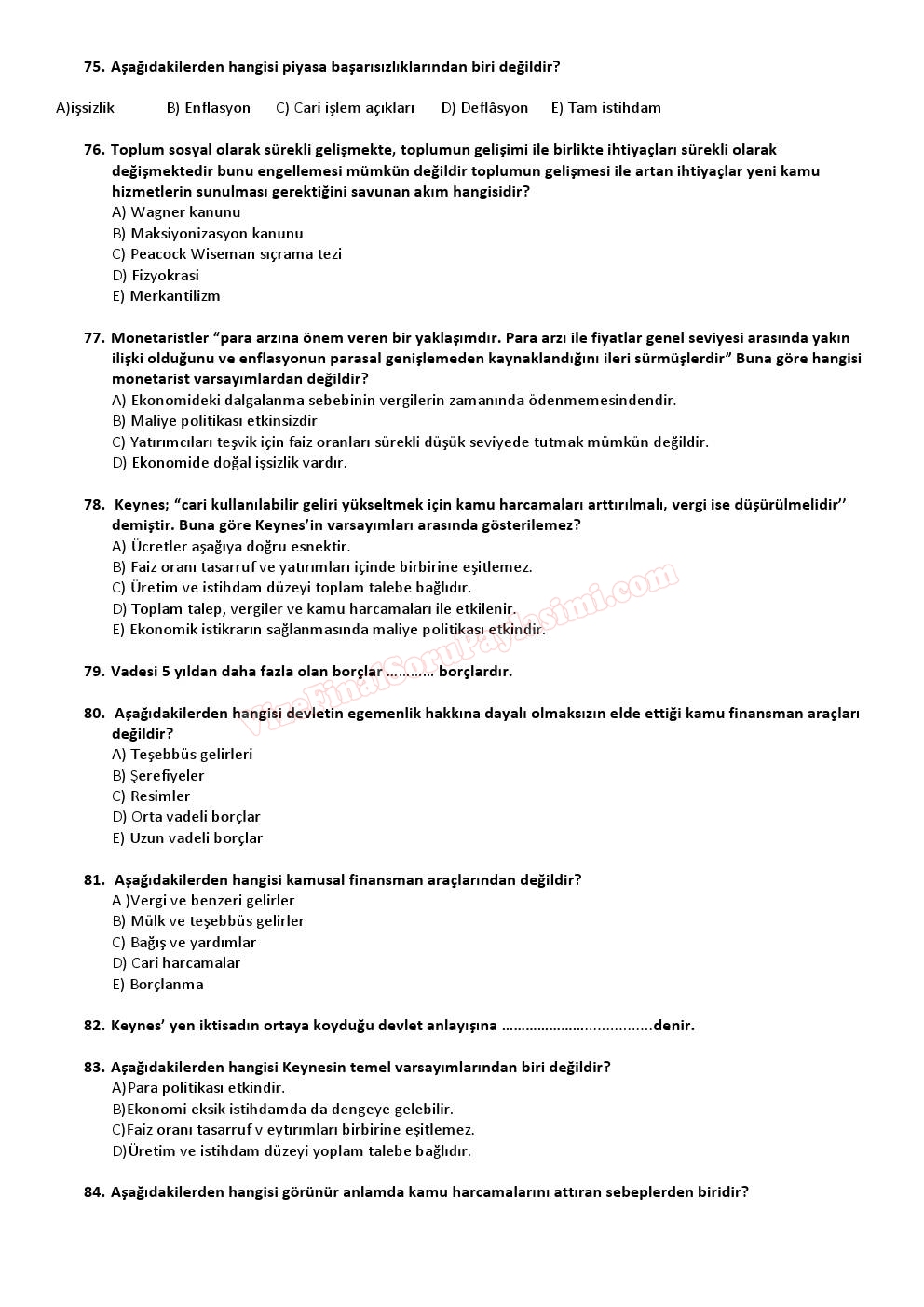 Kamu Maliyesi Dersi Vize Çalışma Soruları