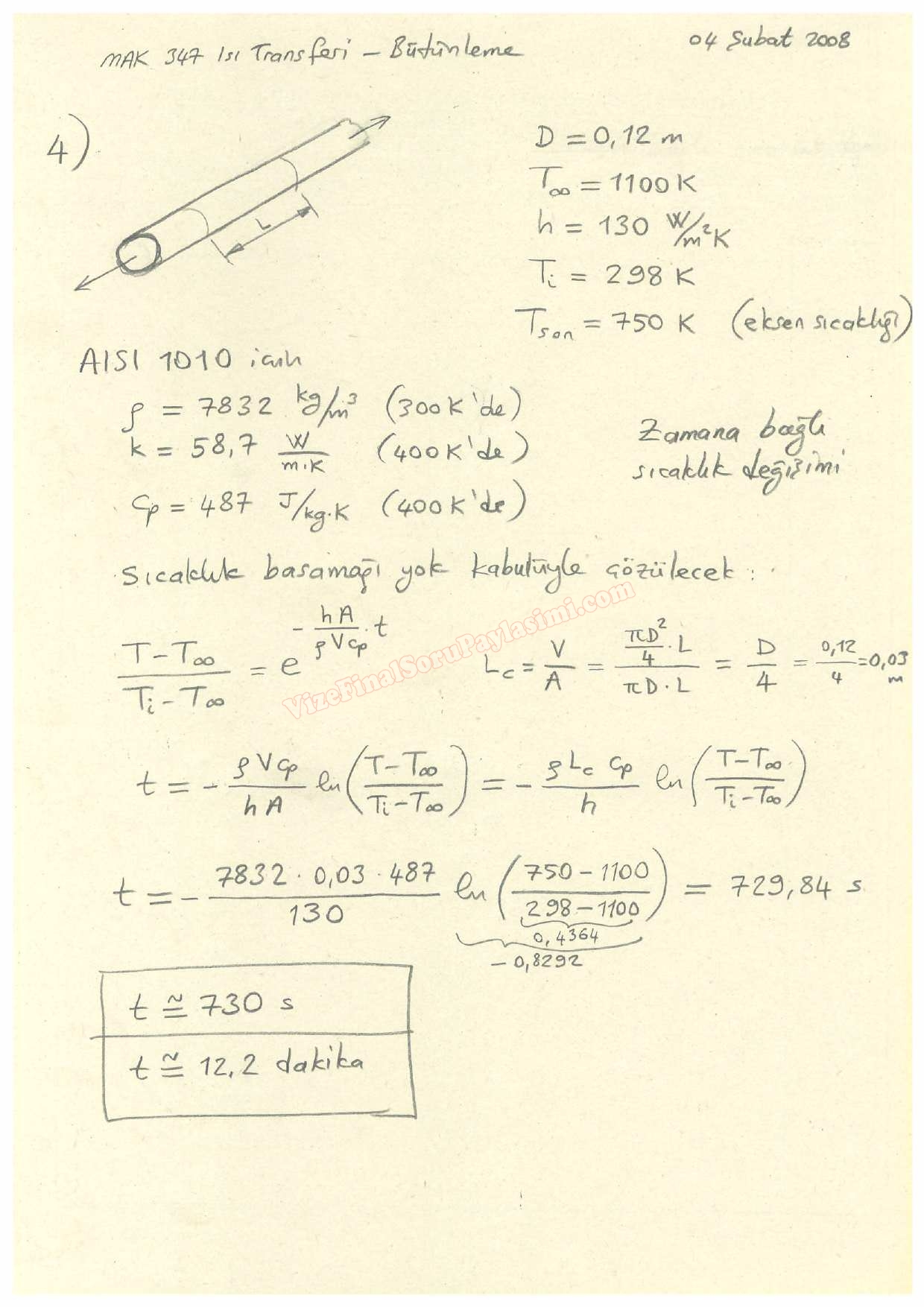 Vize ve Final Soruları / Bülent Ecevit Üniversitesi / Isı Transferi Dersi