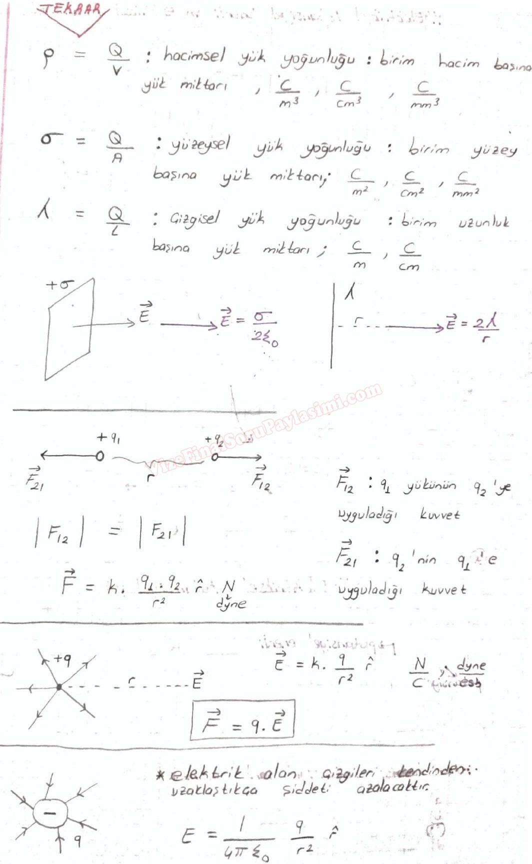 Fizik -2 Gauss Kanunu Ders Notları Çalışma Soruları Örnek Sorular