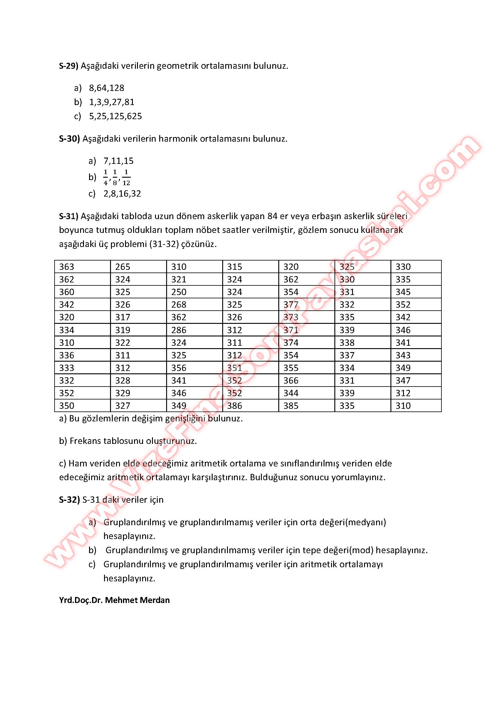 İstatistik Ara Sınav Çalışma Soruları 2014