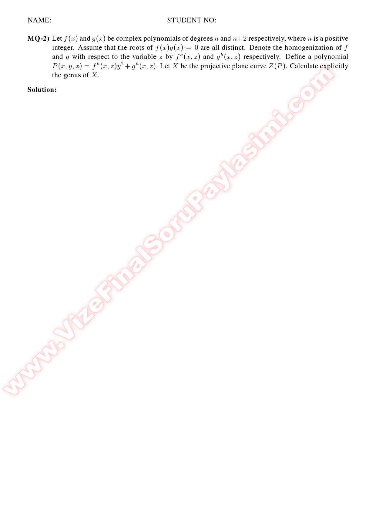 Algebraic Geometry Final Solutions 2013