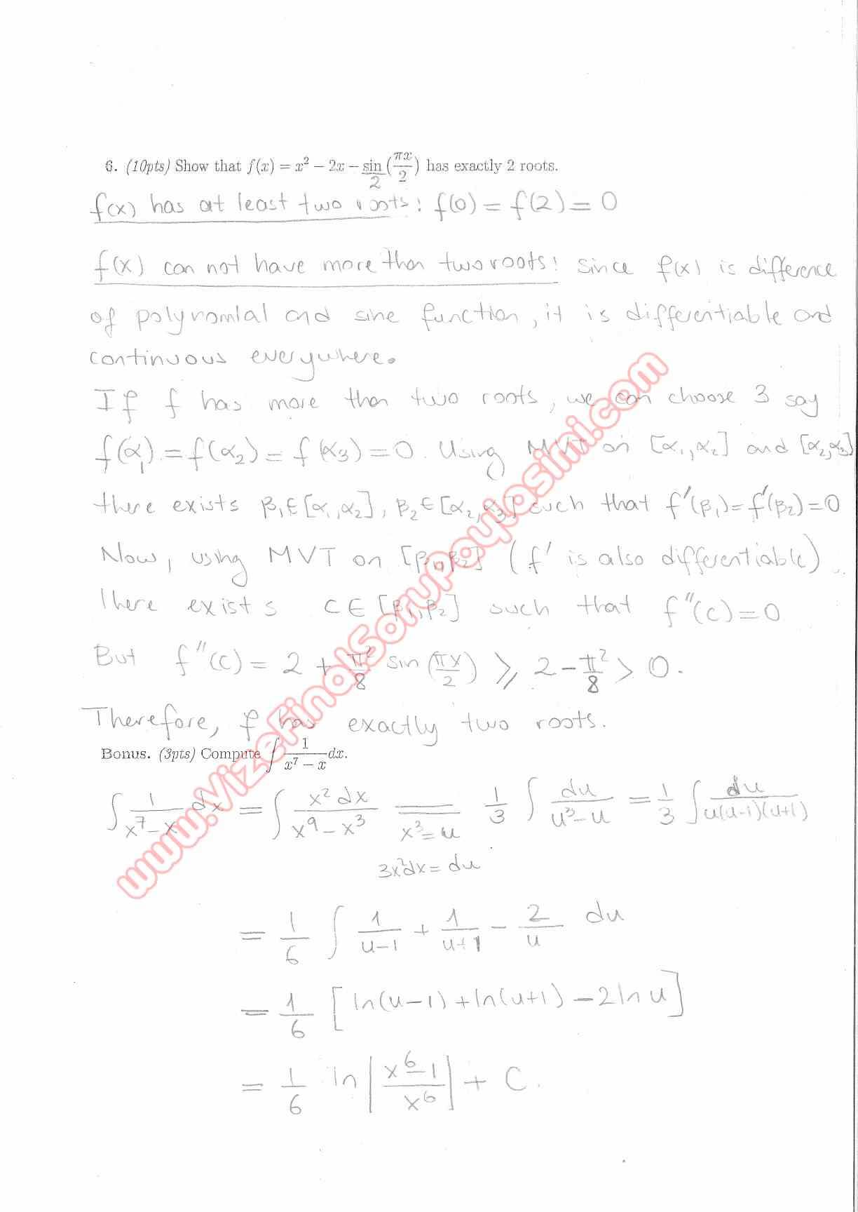 Calculus With Analytic Geometry Short Exam Questions and Solutions Fall 2014 29-10-2015, 04:55