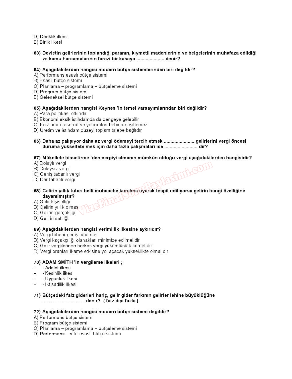 Vize ve Final Soruları / Balıkesir Üniversitesi / Kamu Maliyesi Dersi