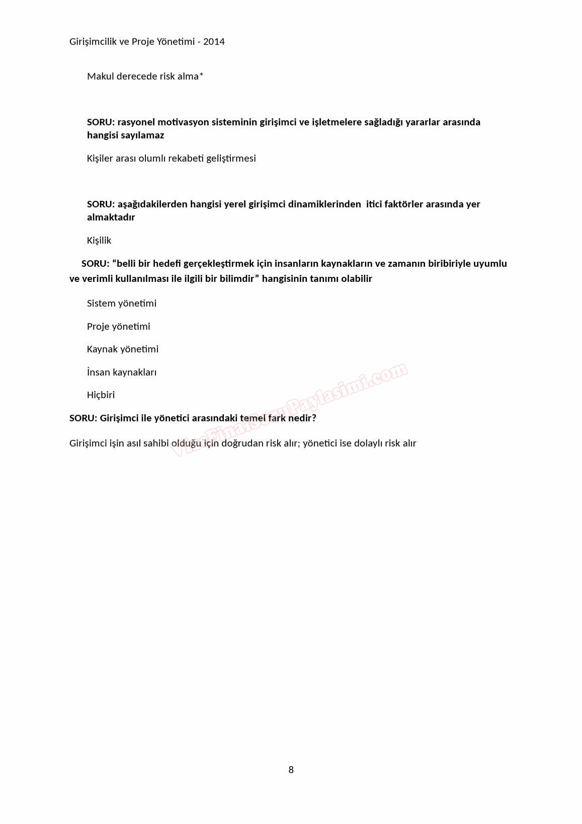 Girişimcilik ve Proje Yönetimi Çalışma Soruları 19-12-2016, 17:01