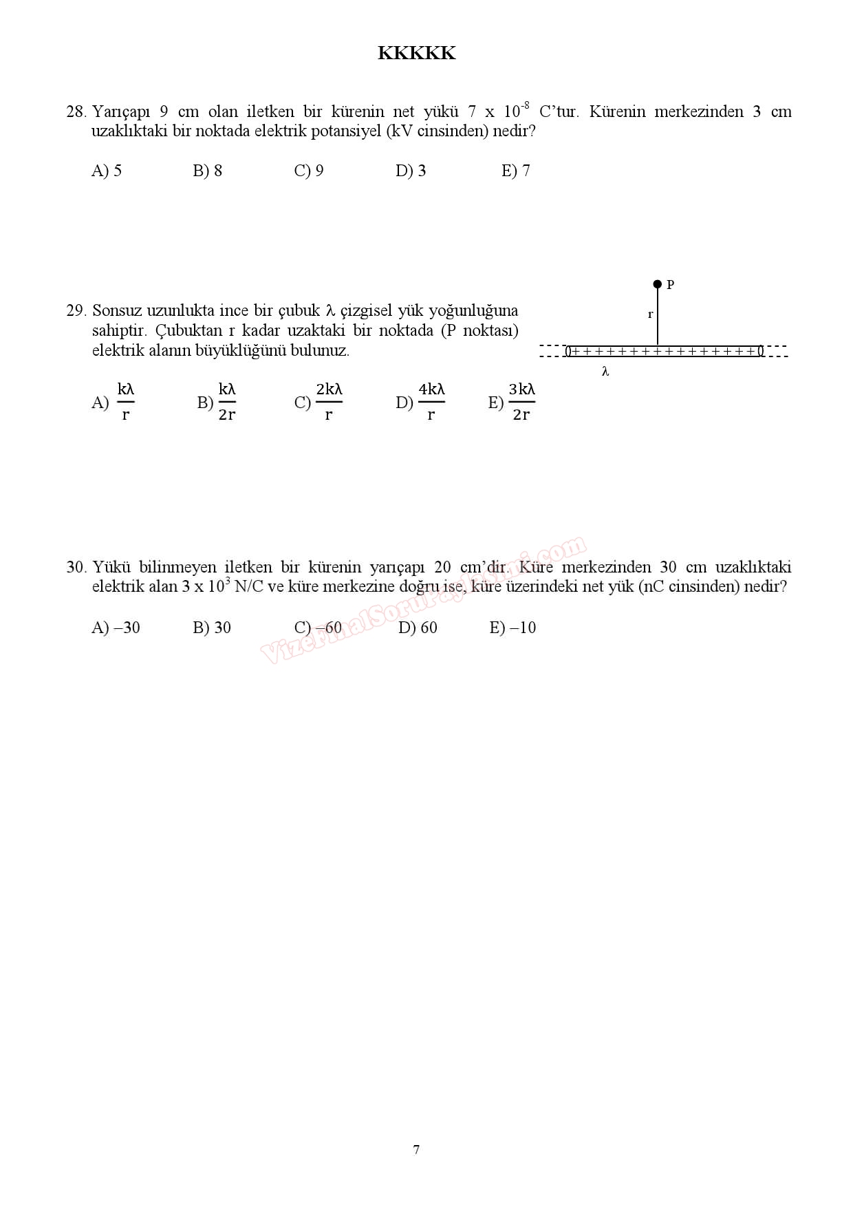Fizik -2 genel sorular final soruları Düzce Üniversitesi 2011