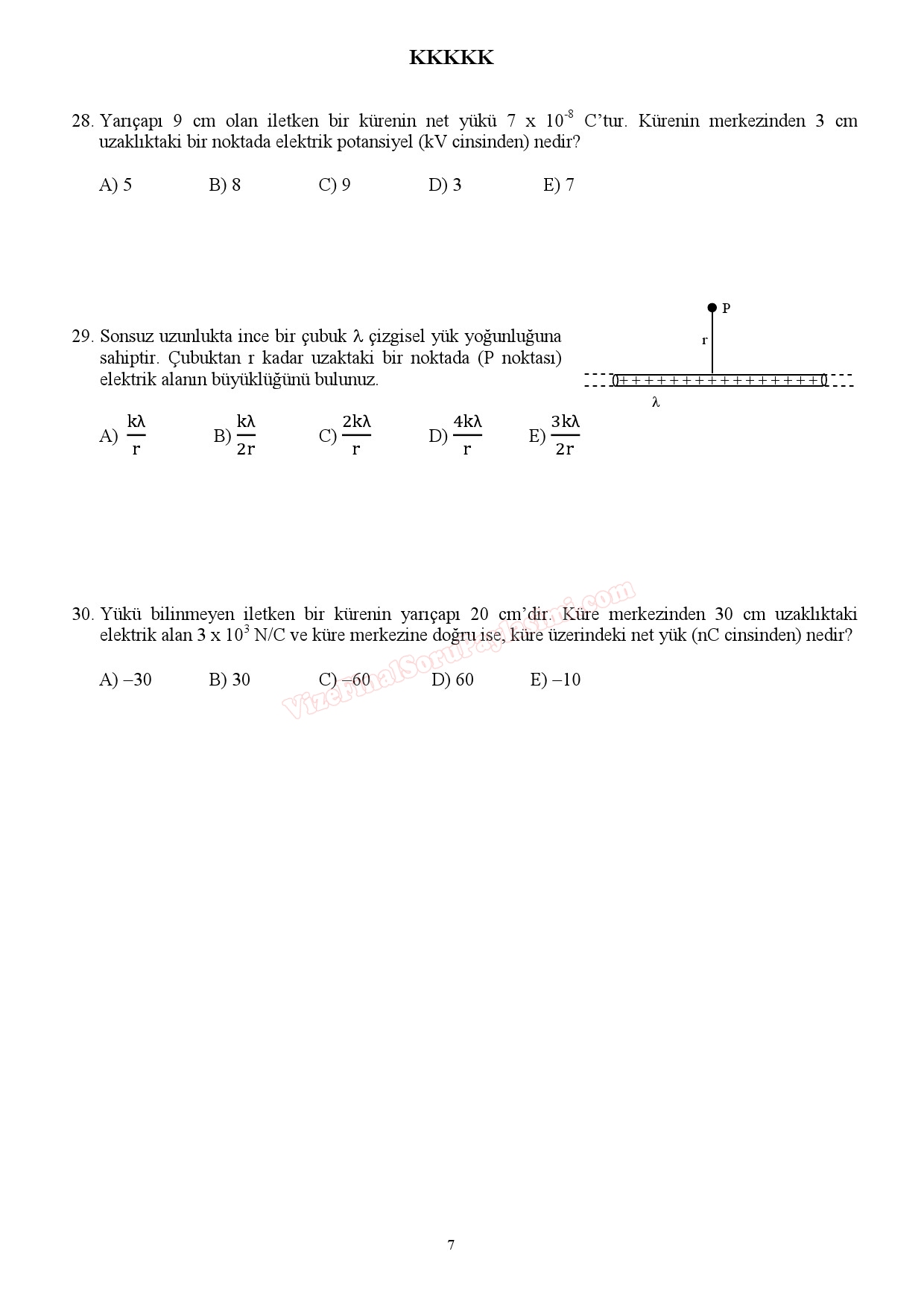 Fizik -2 Genel Sınav Soruları Final Soruları 2011 Düzce Üniversitesi