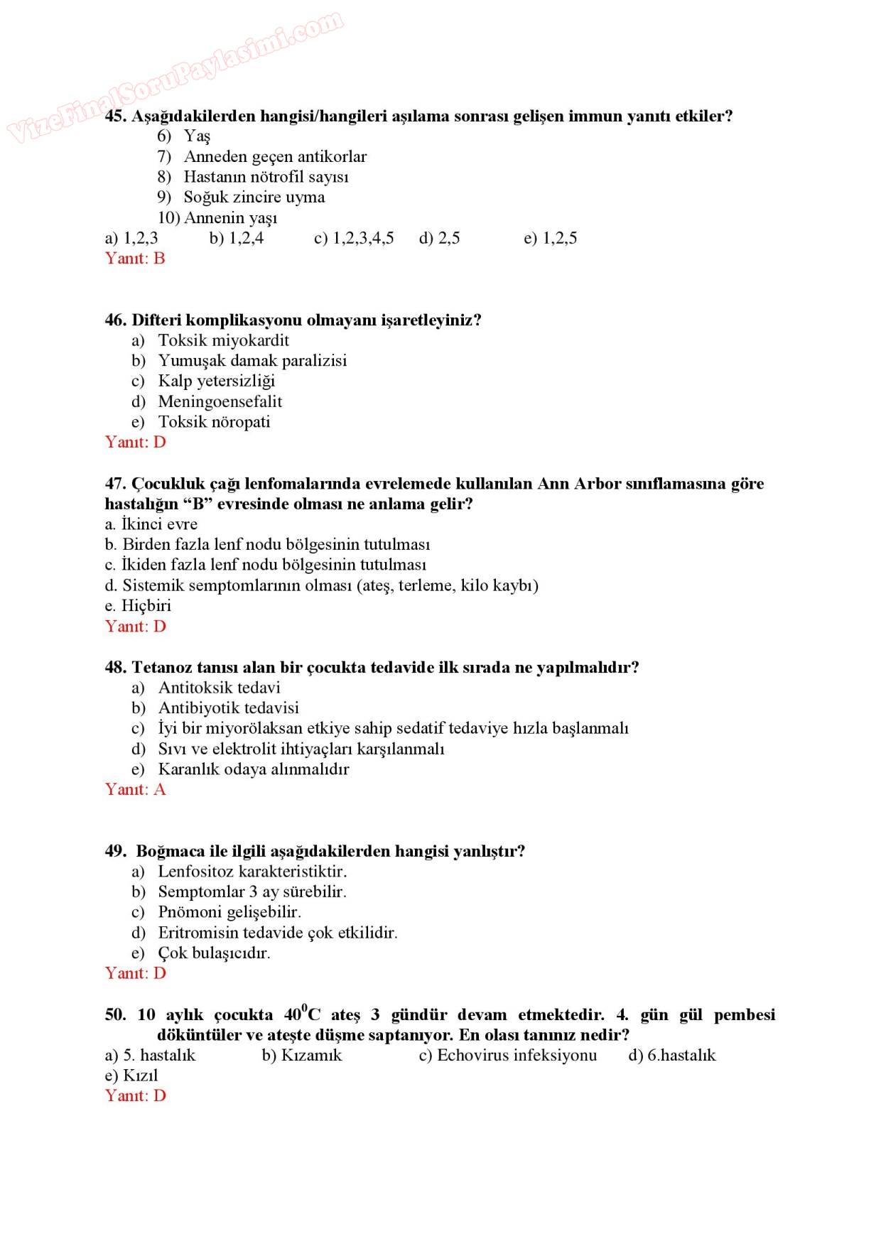 cocuk sagligi hatalikleri sözlü yazili sinav sorulari