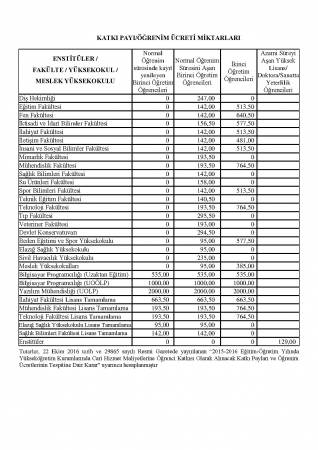 Katkı Payı - Öğrenim Ücreti Miktarları ( Harç Ücretleri ) 2017 Paylaşan: Admin Tarih: 30-01-2017, 09:42 Gösterim: 4 737 Devamı