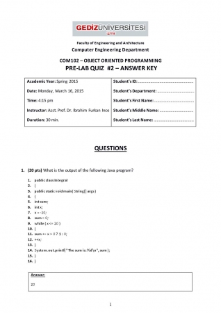 Object Oriend Programing 2.Quiz Questions Paylaşan: Admin Tarih: 26-12-2015, 11:38 Gösterim: 2 550 Devamı