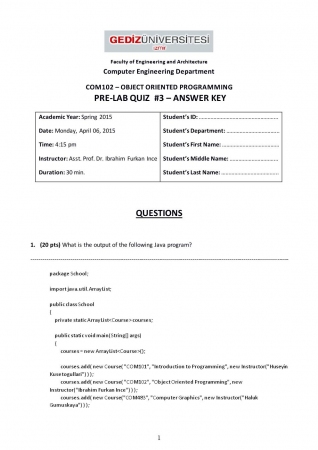 Anahtar Kelimeler: Object Oriend Programing Quiz Questions Gediz Üniversitesi