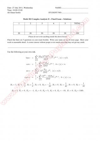 Anahtar Kelimeler: Complex Analysis2 Final Solutions Summer 2011