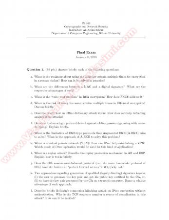 Anahtar Kelimeler: Cryptography and Network Security midterm questions 2012