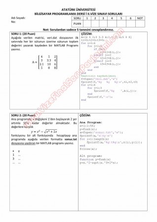 Bilgisayar Programlama (Matlab) 2.Vize Soruları ve Cevapları Paylaşan: Admin Tarih: 13-11-2015, 15:38 Gösterim: 19 107 Devamı