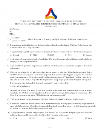 Şifreleme Bilimine Giriş Dersi Final Soruları Paylaşan: mukmel Tarih: 20-03-2018, 20:59 Gösterim: 3 781 Devamı
