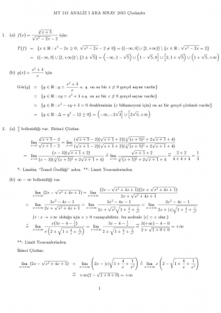 Analiz 1 Vize Soruları ve Çözümleri - 2015 / 2016 Paylaşan: Admin Tarih: 24-10-2016, 14:38 Gösterim: 10 008 Devamı