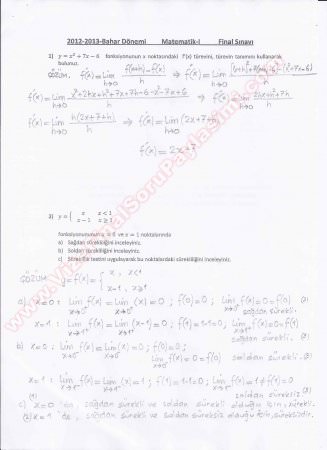 Kategori: Vize ve Final Soruları / Maltepe Üniversitesi / Matematik -1