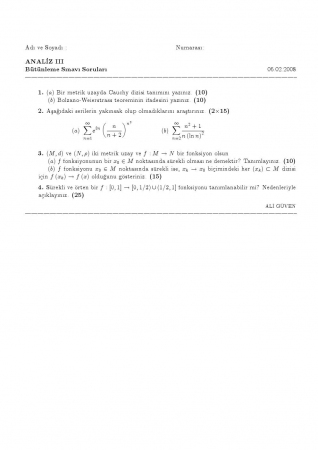 Kategori: Vize ve Final Soruları / Pamukkale Üniversitesi / Analiz -3 Dersi