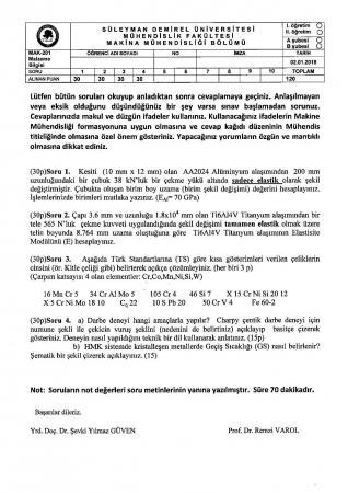Anahtar Kelimeler: Malzeme Bilgisi Dersi Final Soruları ve Cevapları Süleyman Demirel Üniversitesi SDÜ 2017