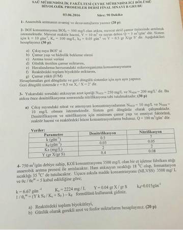Kategori: Vize ve Final Soruları / Sakarya Üniversitesi / Biyolojik Prosesler SAÜ
