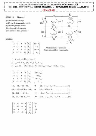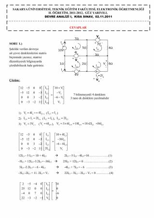 Kategori: Vize ve Final Soruları / Sakarya Üniversitesi / Elektrik Devreleri-1